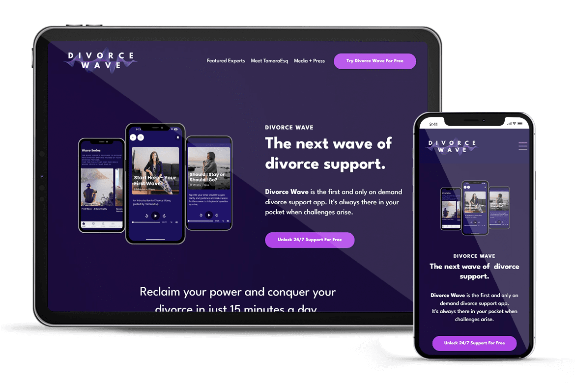 Tamara came to us to build out the very first divorce support mobile app.We spent 3 months researching, coding and testing various versions to get the right look and feel while maintaining legal bounds.We then designed her website around the app. We;re very proud to call Tamara a client.
